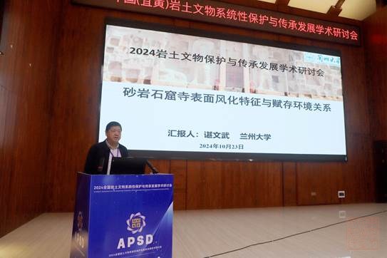 本次研讨会聚焦系统性?;け尘跋卵彝廖奈锉;っ媪俚幕鲇胩粽?,重点围绕科技赋能岩土文物保护、岩土文物保护实践经验开展学术交流和研讨?;嵋楣灿欣醋匀彝廖奈锉;は喙氐ノ坏?40余名专家代表参加,14位代表进行专题报告,18位青年学者进行了汇报交流,分享了岩土文物的?;だ砟睢⒐屎献鹘涣?、科技赋能、系统性?;ぱ芯坑胧导?、文旅融合等方面的最新动态和学术成果。特邀报告环节,詹长法、谌文武、兰立志等专家代表分别对新时期系统性?;け尘跋碌难彝廖奈锉;さ墓屎献鹘涣鳌⒈;だ砟睢⒖蒲а芯亢捅;な导确较蜓刑纸涣鳌N以菏呤趟ど勖魃?、文物?;す婊ふ胖吻糠直鹁汀翱萍几衬苎彝廖奈锵低承员;ぱ芯俊焙汀?文物资源的有效利用与文旅融合”作了专题报告。